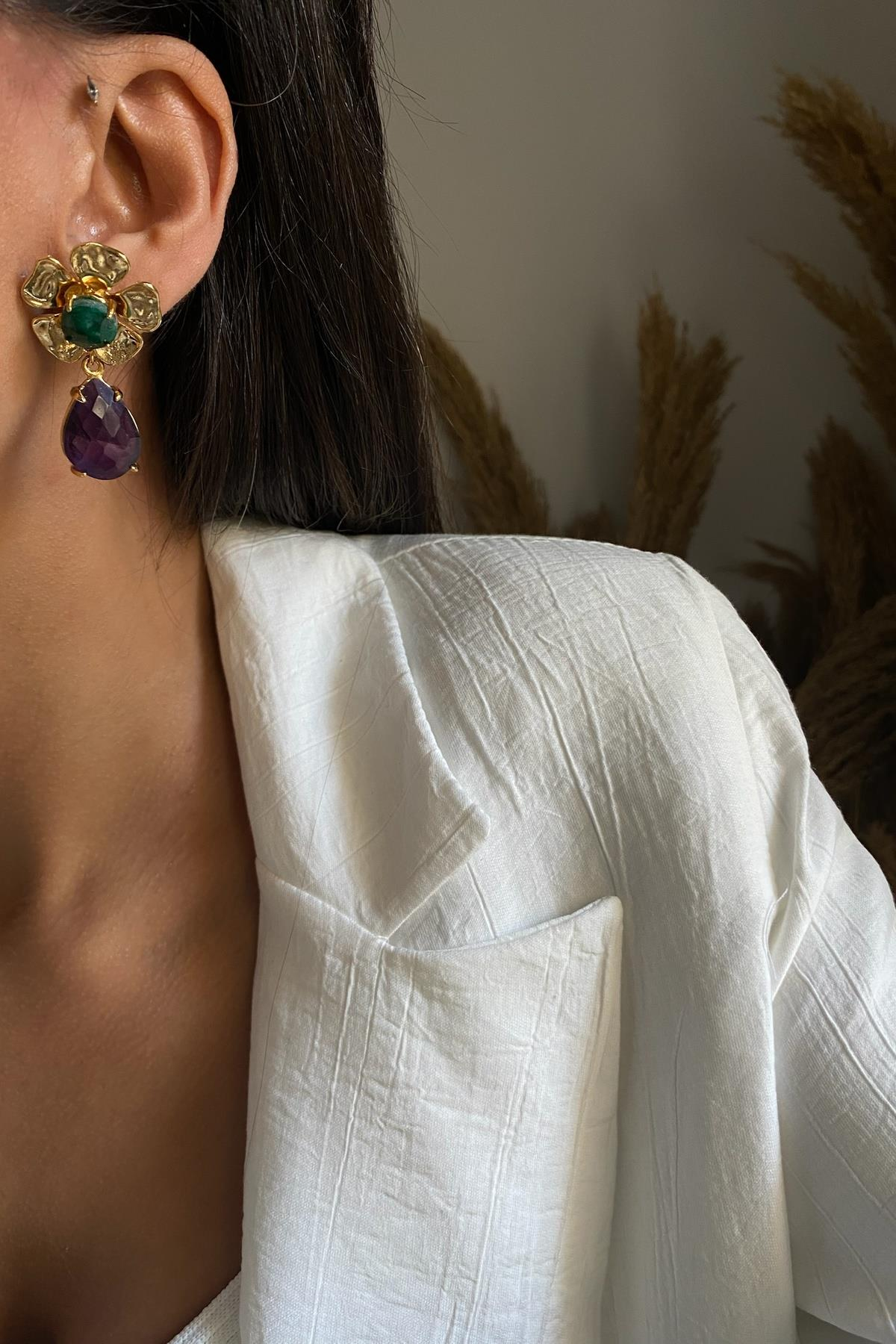 Dürüze Damla Kesim Çiçekli Tasarım  Küpe