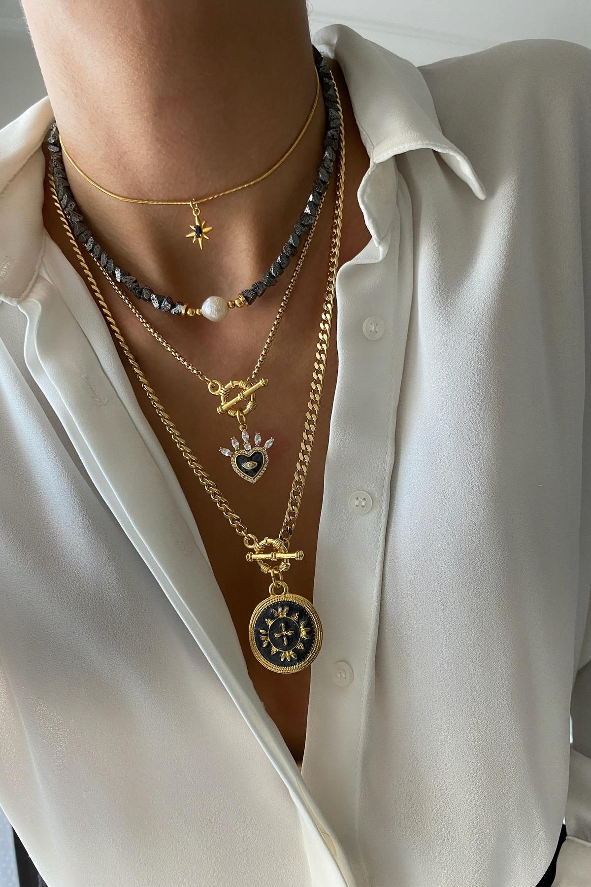 Hematit Taşı Tasarım Kolye Seti (Tüm Set)
