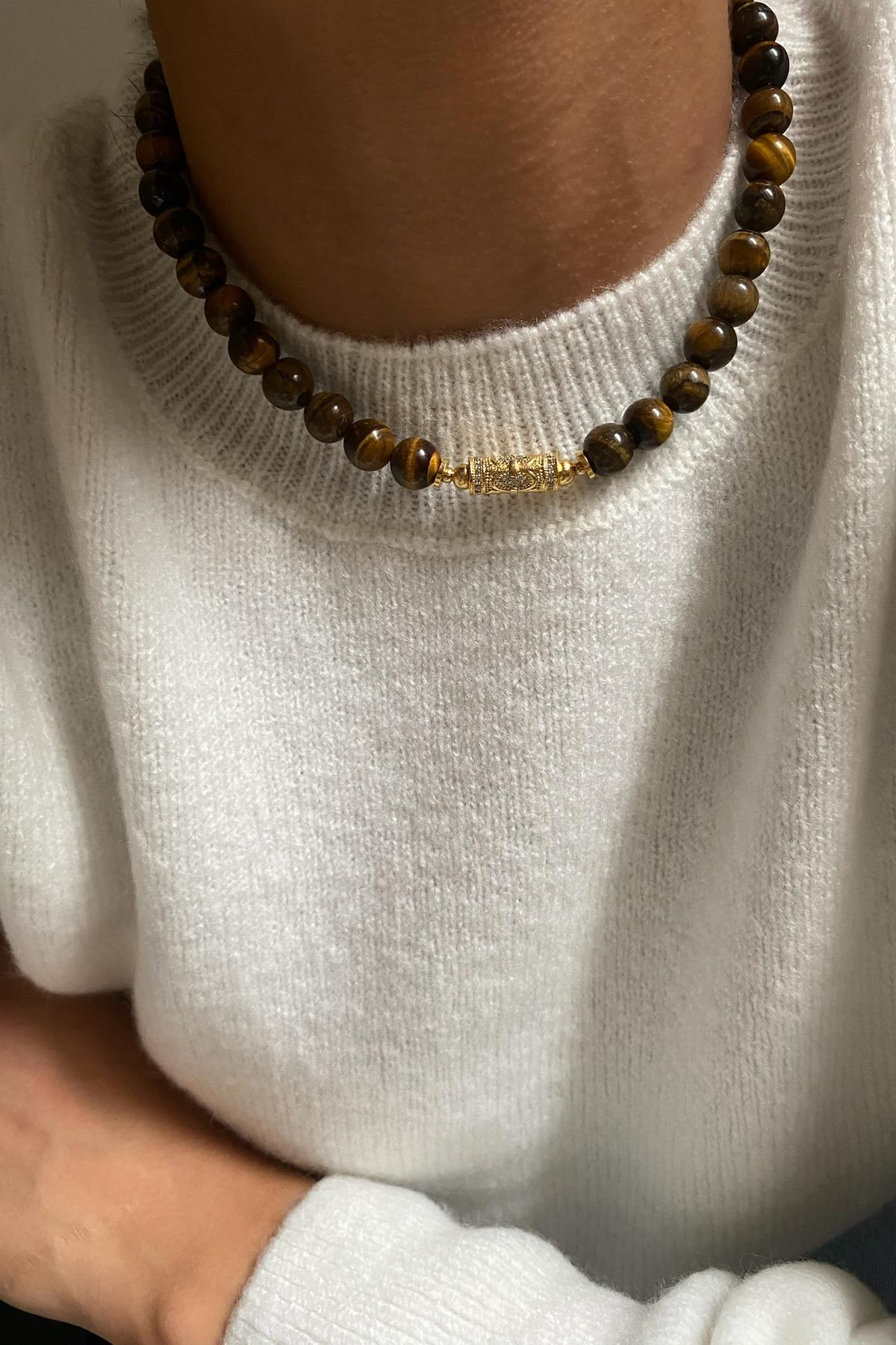 Kaplan Gözü Taşı Tasarım Kolye (10mm)