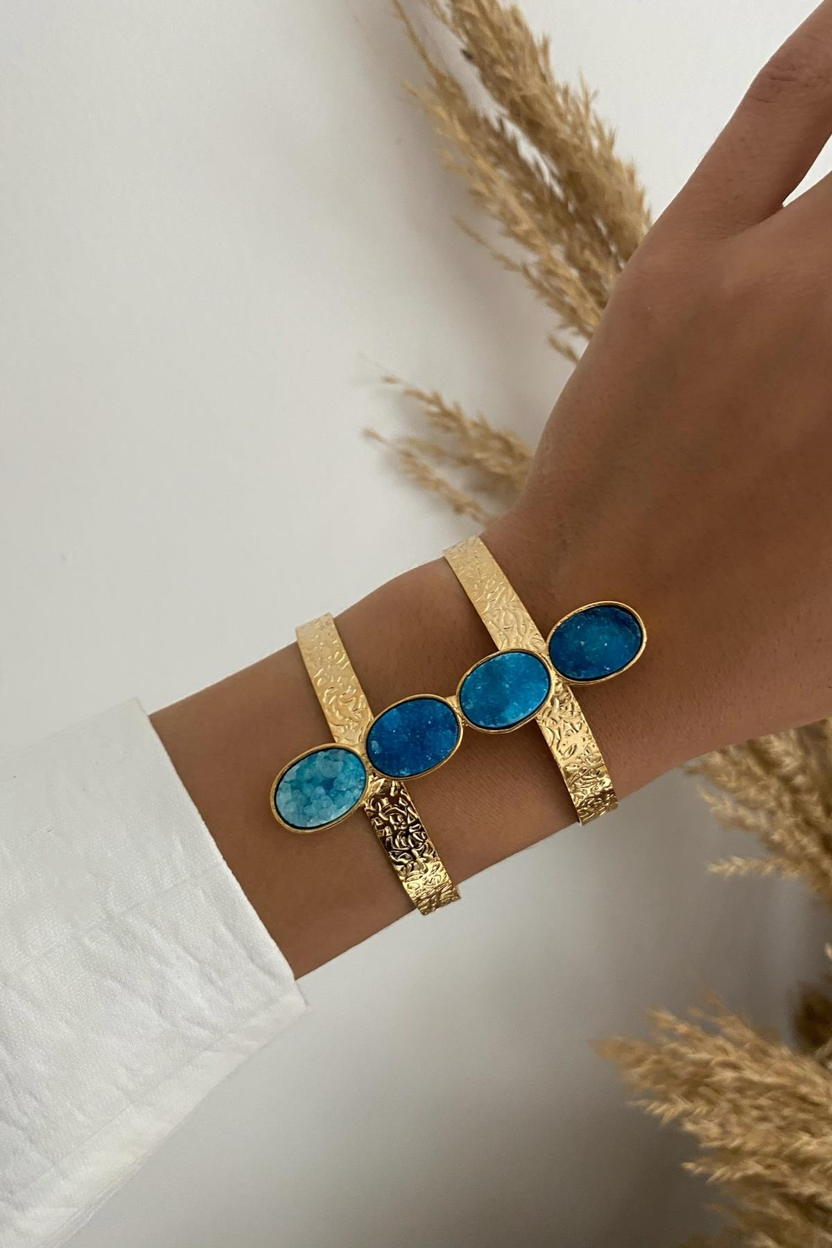 Mavi Dürüze Tasarım Kelepçe Bileklik