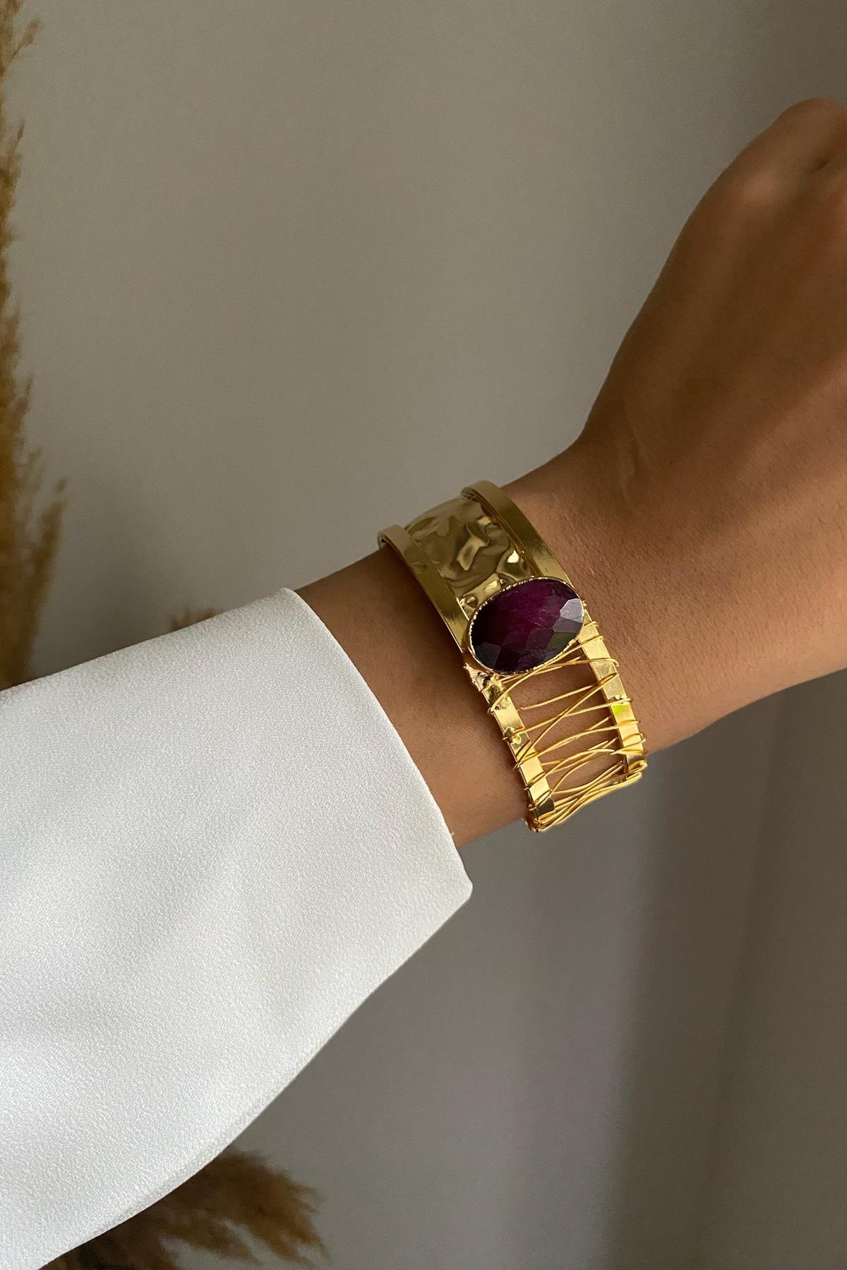 Yakut Taşı Tasarım Kelepçe Bileklik