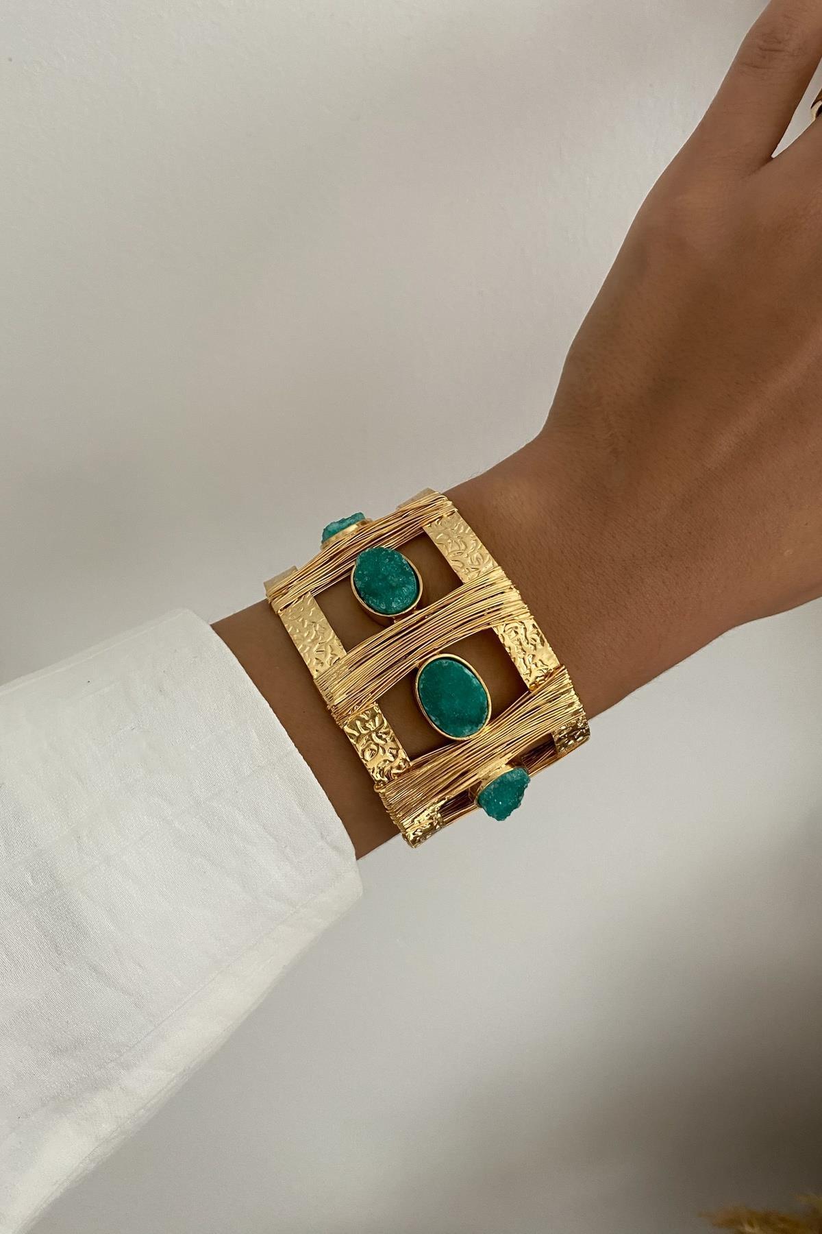 Yeşil Dürüze Tasarım Kelepçe Bileklik