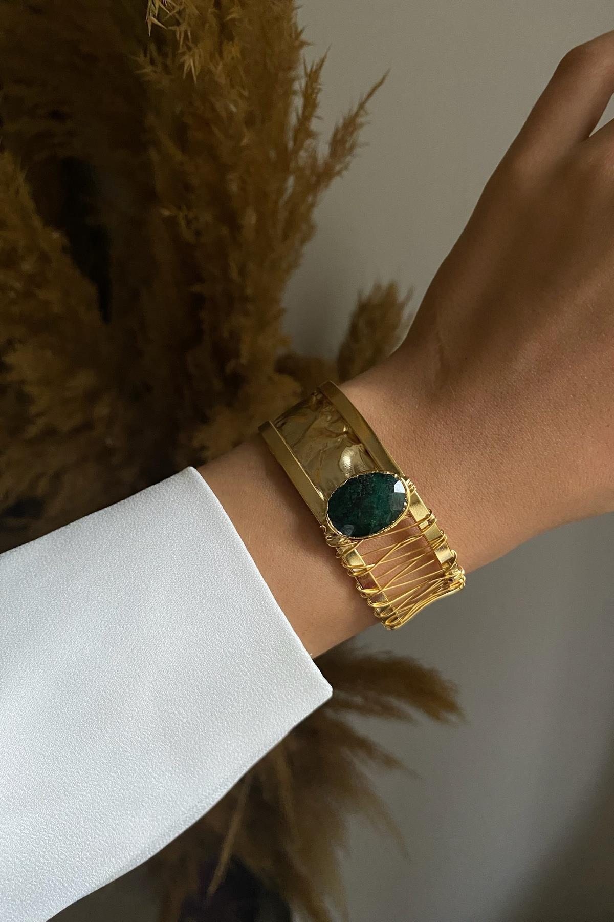 Zümrüt Taşı Tasarım Kelepçe Bileklik